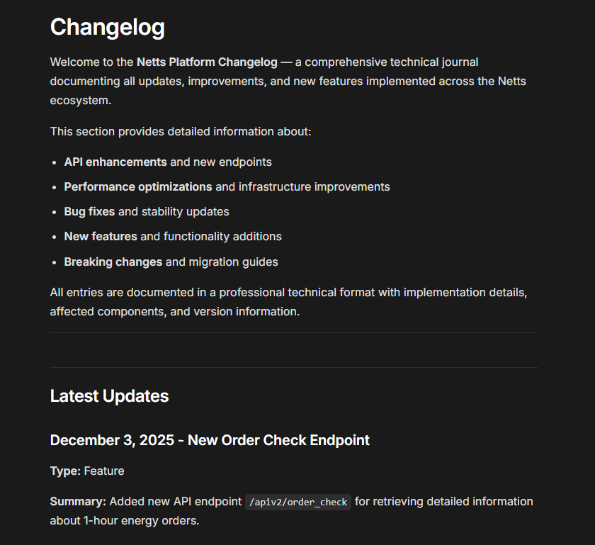 If you're already established in your profession, keeping up to date is as important for you as it is for students. The more forward-looking services in the crypto space understand this and base their platforms on transparency and continuous improvement. A good proof is the in depth documentation style of recent platforms. For example, Netts constantly updates its extensive technical changelog, which is very useful for its customers. It details everything from API improvements and new endpoints to manage resources such as TRON Energy, to major performance enhancements and stability upgrades.