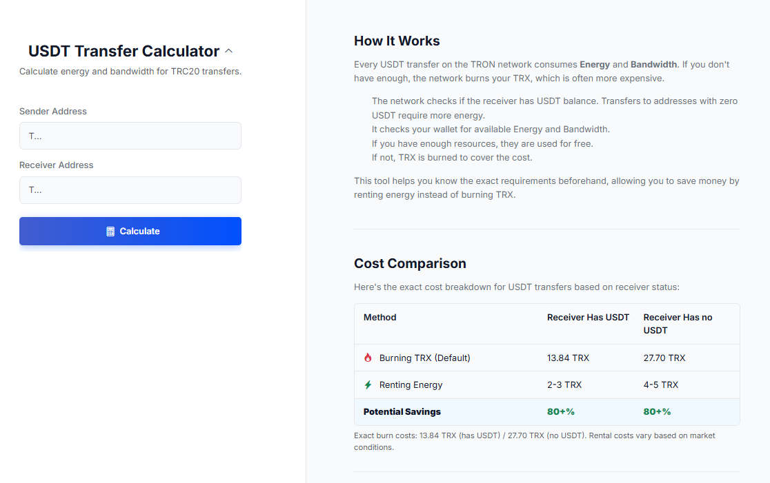 And in this fast-paced world, it's necessary to have the appropriate tools. You wouldn’t go into a ranked match with a broken mouse, so you shouldn’t navigate the crypto economy without knowing what things cost. These are the kind of information that, if you take a lot of bets or trades or payments on the TRON network, really change the game. That’s where tools like the Netts USDT Transfer Calculator come in. It gives users the ability to ‘create a transaction’ by providing the sender and receiver addresses which then evaluate the amount of Energy and Bandwidth needed for that particular transaction, giving them an option to burn some TRX or rent Energy, helping in saving fees. This information will help users to make decisions more economical with digital currencies.