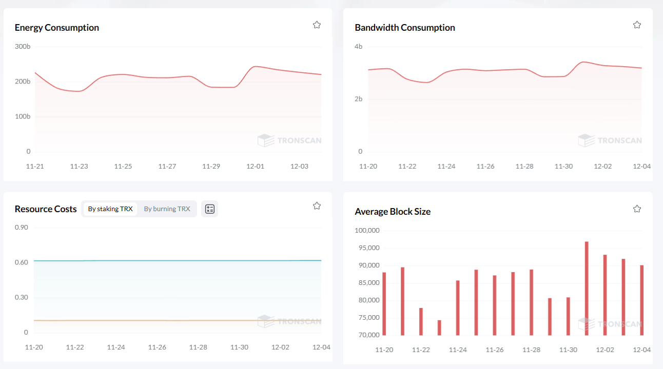 ในขณะเดียวกัน โมเดลทรัพยากรภายในของเครือข่าย ซึ่งประกอบด้วย Energy และ Bandwidth ได้พัฒนาจนกลายเป็นระบบเศรษฐกิจที่ซับซ้อนด้วยตัวเอง หนึ่งในแนวคิดที่ชาญฉลาดที่สุดใน TRON คือระบบนี้ ซึ่งแตกต่างจากการเผาโทเคนเนทีฟที่มีความผันผวนเพื่อจ่ายค่าธรรมเนียมในทุกธุรกรรม ซึ่งทำให้ผู้ใช้ไม่สามารถคาดการณ์ต้นทุนได้ แต่ TRON อนุญาตให้ใช้วิธีการแช่แข็ง (Freeze) TRX แทน