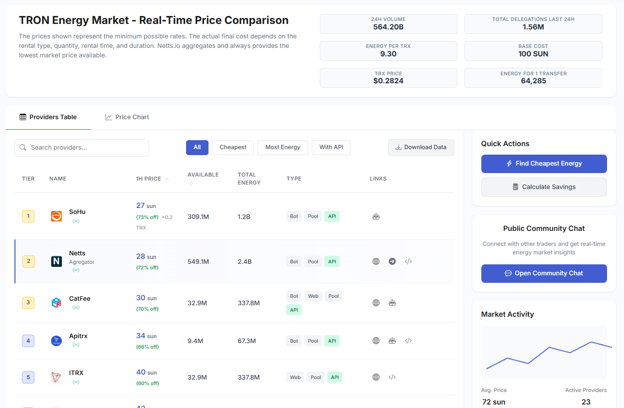 For those who are transacting high volumes of donations on the TRON network, or other use cases, optimizing for resource costs is key to being as efficient as possible. Netts.io is an all-inclusive aggregator for the TRON Energy Market, where users can compare prices across 20+ providers in real-time and lock down the lowest available rates. Consolidating resources, Netts will guarantee you the lowest market price for renting Energy and will save you up to 90% on transaction fees compared to burning TRX. Featuring instant delivery, Netts streamlines how to save on operational expenses. Whether you want as little gas for making personal transfers or huge volume due to a dApp or aid distribution, Netts offers the tools you need in order to make your on-chain expenditure efficient.