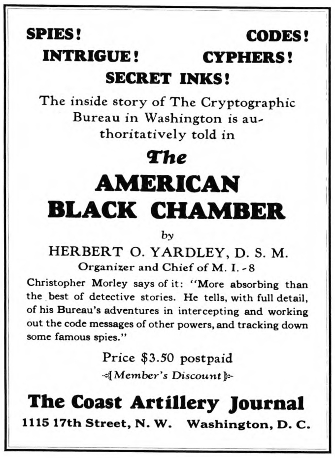 O livro revelador de 1931 de Herbert Yardley, *The American Black Chamber*, foi um guia que aguçou o apetite do público por desvendar segredos, ao mesmo tempo em que expôs estações de interceptação e lançou o primeiro debate mundial sobre privacidade versus segurança.